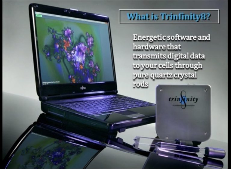 Trinfinity8™ represents a new quantum shift in the emerging science of algorithmic rejuvenation technology. This unique software program was developed as a direct result of information brought back from a near death experience by Dr. Kathy Forti. It is the first syster of its kind to use a personal computer to deliver non-invasive rejuvenation programs based on mathematical codes, vibrational energies, and fractal formulations that are in harmony with core energetics that encompass all of nature. Trinfinity8 leads the way in using pure quartz crystal rods to directly deliver information to the body in a language it understands—math.